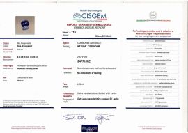 di 4.56 ct sigillato, corredato di certificato CISGEM n. 716 datato 28/04/20215 che indica assenza di trattamento termico e origine Sri Lanka