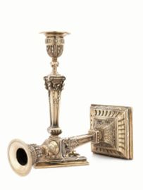 COPPIA DI CANDELIERI, MOSCA, INIZI SECOLO XX, ARGENTIERE CARL FABERGÉ