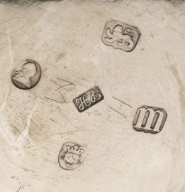 in argento, corpo decorato da volute e fiori, coperchio a cupola, presa sagomata, alt. cm 20,5 g 660. Decoro a sbalzo probabilmente eseguito in epoca posteriore