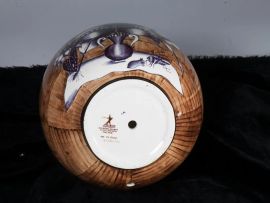 Base di lampada in terraglia policroma a fondo marrone con decoro in bianco