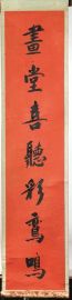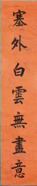 dipinti su carta con caratteri cinesi descriventi paesaggi, uno a fondo rosa, uno a fondo rosso, e due a fondo arancio, cm 100x20,5, cm 118x26, cm 51x23,5(4)