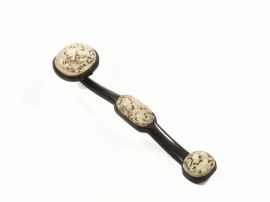 A WHITE JADE AND WOOD RUYI SCEPTRE, MING DYNASTY