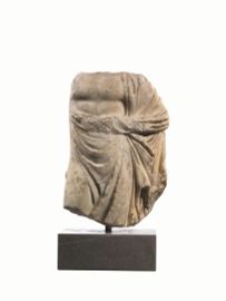 Stato di conservazione: privo della testa e del braccio destro; mutilo nella parte inferiore; scheggiature diffuse