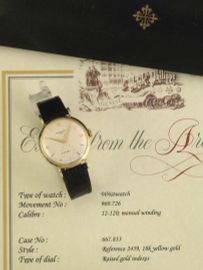 Corredato di Estratto di Archivio Patek che conferma che la produzione di questo orologio è avvenuta nel 1951 e la sua vendita il 9 Giugno 1952.