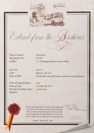 With Patek Philippe Extract from the Archives dated March 2013, confirming production of the present watch in 1946 and its subsequent sale on November 6th, 1947.