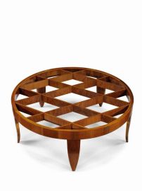 A metà degli anni 1930 Ponti progettò per l’arredo di poche ma significative commissioni residenziali un tavolino caratterizzato appunto da un reticolo intricato. La sua forma, elegante e complessa, dà l’impressione della solidità, ma allo stesso l’incrocio di spazi pieni e vuoti conferisce al tavolo una leggerezza relativa, sottolineata e in qualche modo rafforzata dal piano in cristallo. E se questo motivo a reticolo, che tornò spesso nei suoi lavori tra gli anni trenta e cinquanta declinato in diverse forme, rappresenta un’invenzione pontiana, il dettaglio della gamba affusolata rimanda chiaramente all’ispirazione neoclassica che dominò i suoi disegni nel periodo a cavallo del 1930.