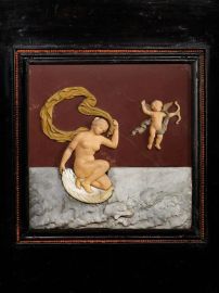 Alcuni degli artefici che presero parte alla realizzazione di questo lavoro, e i cui nomi sono testimoniati nell’iscrizione sopra trascritta, sono noti. Antonio Giansanti e Gaetano Ferrer, intagliatori, figurano nell’organico dal 1879. Giansanti (1827-1900) risulta autore di una traduzione in pietra lavica del rilevo con La Notte di Berthel Thorvaldsen (4) e collaborò alla realizzazione di un piano in marmo nero con intarsi di rilevi in pietra lavica, corallo, e con cammei (1884). Ferrer doveva appartenere ad una famiglia di origine spagnola che diede i natali ad un suo omonimo, Gaetano Ferrer, uno dei professori di intaglio nel Real Laboratorio delle Pietre dure di Napoli dagli anni Settanta del Settecento almeno fino al 1805 (5). Vincenzo Palomba è autore di un Bacco, conservato nel Museo del Corallo a Torre del Greco (6). Il cognome Porzio, infine, è comune a molti artefici del luogo, il più noto dei quali è Domenico che lavorò assiduamente fra Otto e Novecento.
