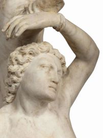 L’opera, di una sofisticata eleganza nella postura dinoccolata, quasi danzante, del santo martire e nel minuto intaglio che ne definisce i tratti languidi del volto e la vaporosa chioma inanellata, è stata recentemente ricondotta con efficaci argomenti da Vito Zani (Zani, op. cit. 2014, p. 879) a un gruppo di altre quattro statuette marmoree affini nel soggetto e negli accenti stilistici, ma anche nelle misure (le figure alte circa cm 50) e nella forma tondeggiante della base, variamente connesse all’attività di Cristoforo Lombardi: tra i principali interpreti della svolta classicista nella scultura lombarda di primo Cinquecento, celebre soprattutto per aver eseguito le effigi sepolcrali di Ludovico il Moro e Beatrice d’Este nella Certosa di Pavia (commissionate nel 1497 per Santa Maria delle Grazie a Milano).