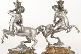 COPPIA DI CANDELABRI, NAPOLI, 1960 CIRCA, ARGENTIERE LUIGI AVOLIO