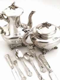 SERVITO DI POSATE E SERVITO DA TÈ, LONDRA, 1848, ARGENTIERI, JOSEPH II E ALBERT SAVORY E CITTÀ DI SHEFFIELD 1846, ARGENTIERE JOHN OXLEY