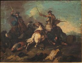 I due dipinti possono confrontarsi con analoghi soggetti di Giuseppe Zais (vedi G. Sestieri, I pittori di battaglie, Roma, 1999, p. 519, figg. 1-2)