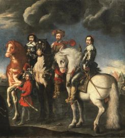Gli ultimi due cavalieri potrebbero essere Carlo I Gonzaga Nevers (accanto a Richelieu) che ebbe il dominio del ducato di Mantova dopo la pace di Casale, e Giulio Sacchetti (tra i due Barberini) anch’egli coinvolto nello stesso avvenimento (Pegazzano cit. p. 83).