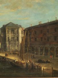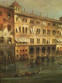 Codificato per la prima volta nelle vedute del Canaletto, questo soggetto fu ripreso da Francesco Guardi con variazioni nel punto di vista, nell’ampiezza dell’inquadratura e nell’accentuazione dello scorcio dei palazzi raffigurati.