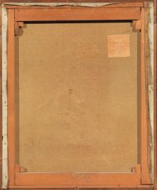 retro: etichetta della Mostra delle opere di Antonio Mancini di Roma del 1927