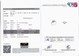 Corredato di certificato GCS 5777-7676 datato 14/11/2016 che attesta l'origine naturale d'acqua salata della perla