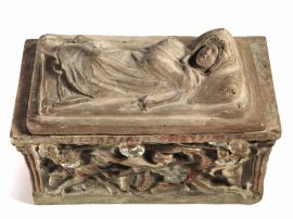 Stato di conservazione: cassa integra, matrice stanca, riprese alla policromia; coperchio con restauri