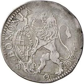 Ag D/ ALEXANDER VII P M Nel campo stemma papale a targa sormontato da chiavi decussate e tiara. Ai lati a sinistra stemma Lomellini sormontato da galero cardinalizio e a destra stemma crociato cittadino con mascherone R/ BONONIA DOCET Nel campo stemma cittadino inquartato, semiovale in cornice Chim. 528 Munt. 65a Raro BB+