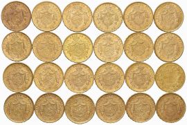 BELGIO, VENTIQUATTRO MONETE IN ORO DA 20 FRANCHI