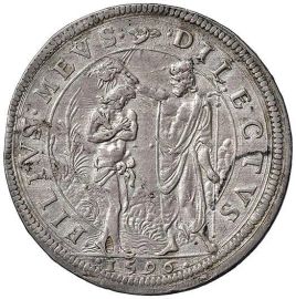 Moneta esposta in occasione della mostra curata da Mario Ber-nocchi a New York nel 1981 intitolata “Il Fiorino. The Dollar of the Renaissance World. The Coin engravers of the Republic of Florence and the Medici Dukedom, 1300 to 1700” presso l’Italian Cultural Institute e pubblicata nel catalogo relativo.
