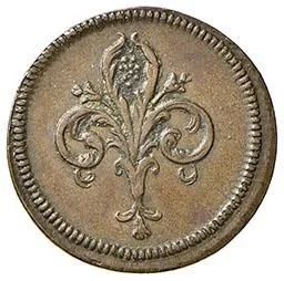 Gettone ordinato in occasione dei festeggiamenti per la cerimonia della presa di possesso del Regno il 15 giugno 1802 “per uso della distribuzione dell’elemosina di pane che S. M. si è degnata di ordinare che venga fatta ai poveri della Città di Firenze….” (Archivio della Zecca. Notizie, Ordini, Decreti, F. 2 Ved. Spigardi 1, l.c. cfr. Di Giulio pp. 433-434).