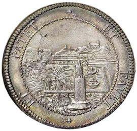 Ag D/ COSMVS III MAG DVX ETRVRIAE VI busto a d. coronato e con lunga capigliatura. Sotto nel giro 1704. R/ ET PATET ET FAVET veduta del porto di Livorno.