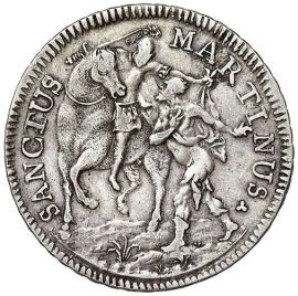 Ag D/ RESPUBLICA LUCENSIS scudo a volute con la scritta LIBERTAS, coronato e sorretto da due pantere rampanti. Sotto nel giro 1756 R/ SANCTUS MARTINUS Santo a cavallo gradiente a s. in atto di tagliare il mantello per il mendico a lui appresso.