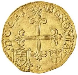 Au D/ PAVLVS III PONT MAX Nel campo stemma semiovale gigliato del pontefice sormontato da chiavi decussate e tiara R/ sole BONONIA rosetta DOCET Nel campo croce gigliata con stemma Cybo sormontato dal galero cardinalizio a sinistra e quello crociato di Bologna a destra Chim. 300 Munt. 88 Molto raro SPL