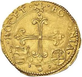 Au D/ PIVS IIII PONT MAX Nel campo stemma semiovale gigliato del pontefice sormontato da chiavi decussate e tiara con cordoni che lo circondano R/ sole BONONIA rosetta DOCET Nel campo croce gigliata con stemma Carafa sormontato da galero a sinistra e quello crociato di Bologna a destra Chim. 349 Munt. 68 Molto raro schiacciatura di conio al dritto q.BB/SPL