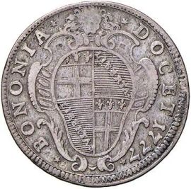 Ag D/ PIVS VI PON MAX AN III Nel campo busto del pontefice a destra. Sotto l’incollatura 30 R/ BONONIA DOCET 1777 Nel campo stemma cittadino inquartato semiovale in cornice Chim. 1050 Munt. 212 MB/BB