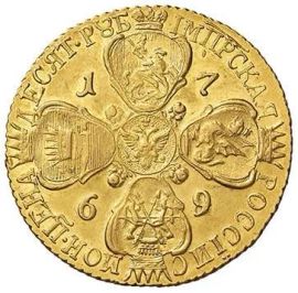 RUSSIA, CATERINA II (1762-1796), 10 RUBLI 1769 SAN PIETROBURGO
