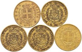 SAVOIA, CINQUE MARENGHI IN ORO DA 20 LIRE