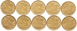 SVIZZERA, DIECI MONETE IN ORO DA 20 FRANCHI