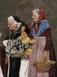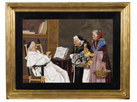 Il soggetto di questo pannello è liberamente tratto dal dipinto di Alessandro Sani (Firenze 1856-1927) “Il giorno del mercato”, realizzato a Firenze negli ultimi anni dell’800