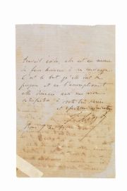 LISZT, Franz (1811-1886). Lettera autografa firmata, in francese, una pagina in 8vo scritta fronte/retro, datata “Rome 7 mai ‘63”. Trascurabili tracce del tempo. Si tratta di una missiva in cui il grande compositore e pianista ungherese si rivolge ad un collega di chiara fama, chiamandolo “cher Cavaliere”, parlandogli dei progressi musicali della cugina “Mademoiselle Giuli”: “Dès le début de votre connaissance avec Mademoiselle Giuli, votre cousine, je l’ai félicité de sa parenté avec un compositeur d’une aussi éclatante renommée que la vôtre, et il m’est agréable, il vous ajiurer, cher Cavaliere, du beau degré de talent qu’elle a atteint. Par son heureuse organisation musicale incessamment développée à l’aide d’un travail assidu, elle est en mesure de faire honneur à son cousinage.” Mademoiselle Giuli è nominata da Liszt anche in una lettera al professore veneziano Ugo Bassani (1851-1915) (cfr. Letters of Franz Liszt. Collected and Edited by La Mara. Translated by Constance Bache. Vol. II. From Rome to the End. Grevel, 1894, n. 253).