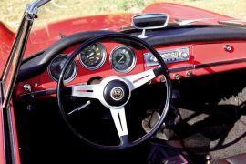 La Giulia fu la logica evoluzione della Giulietta: più moderna, più veloce, e anche più facile da costruire. Mentre la berlina fu rivoluzionata, con una linea molto aerodinamica, la Giulia Spider fortunatamente fu mantenuta quasi identica alla Giulietta, con qualche piccola modifica come la presa d’aria sul cofano, le luci posteriori più grandi, e soprattutto il motore da 1600 cm3 e circa 92 cavalli. Mentre la Giulietta Spider fu costruita in 14,300 esemplari, le Giulia Spider furono solo 9,250.