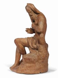 Resa visibile nella collezione Vezzosi solo in tempi recenti e in preparazione della presente vendita, la piccola terracotta si presenta in buono stato di conservazione: una leggera sbeccatura interessa la punta di un piede ed è perduto il fuoco che si trovava in basso a sinistra, là dove si rivolgono corpo e mani del vecchio.