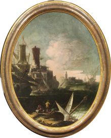 coppia di dipinti ad olio su tela, cm 82x64,5