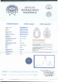 corredato di certificati IGN n. 20807, 20808 e 20809, datati 20/07/2015, che attestano le caratteristiche dei due diamanti e dell'anello nel complesso