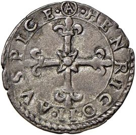 Ag gr. 1,83 D/ giglio • R • P • SEN • IN • MONTE • ILICINO • Lupa con la testa retrospiciente nell’atto di allattare uno dei gemelli mentre l’altro le sta coricato sul dorso; sotto la data 1556. R/ lettera A cerchiata HENRICO • II • AVSPICE • croce gigliata con fiore al centro. MIR 344 Toderi 90