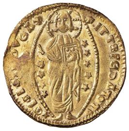 SCHIO DOMINAZIONE GENOVESE (1347-1415) CONTRAFFAZIONE DEL DUCATO VENEZIANO A NOME DI ANDREA DANDOLO (1341-1354)