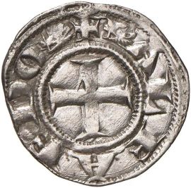 Ag gr. 1,91 D/ + SENA VETVS S tra quattro crocette R/ + testa di cinghiale ALFA ED O testa di cinghiale Croce patente. CNI 53 MIR 489/9.