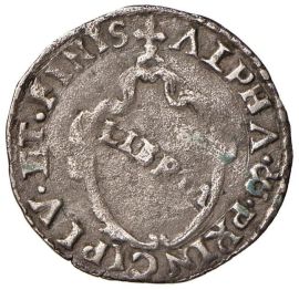Mi gr. 0,97 D/ lettera A cerchiata SENA VETVS • CIVITAS • VIRGINI la lupa retrospiciente nell’atto di allattare i gemelli posta su un piano sotto la quale è la data. R/ + ALPHA • W • PRINCIPIV • ET • FINIS scudo cuoriforme con una banda con la scritta LIBERTA. MIR 563/5 Toderi 78