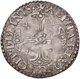 Ag gr. 1,46 D/ + SENA • VETVS • CI lettera A cerchiata VITAS • VIRG la lupa retreospiciente nell’atto di allattare i gemelli; sotto la linea di terra la data 1548. R/ + ALPHA • ET • W • PRINCIPI • ET • FINIS Croce filettata e ornata in quadribolo. MIR 561 Toderi 66