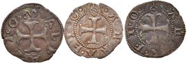 Il segno dello scudo crociato bandato di due non è mai stato individuato in questa serie di quattrini ed è riferibile al n. 84 della tav. III dell’abaco degli zecchieri riportata nel MIR a p. 278. Interessante lotto da studio.