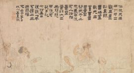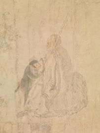 raffigurante Lohan in un paesaggio, nella parte superiore una calligrafia recante firma e tibro dell'artista Jin Nong (1687-1763) e nella parte sinistra è presente la firma Liu Yuan (XVII-XVIII sec.) , cm 26,8x 72 e 26,8x47 (2)