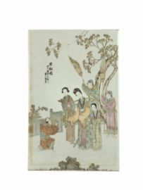 in porcellana policroma raffiguranti personaggi, cm 38,5x25,5 (4)