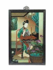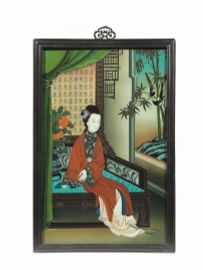 su vetro con soggetto femminile in un interno, cm 53,5x33,5 (3)