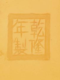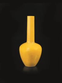 di colore giallo di forma globulare e con collo allungato. Sotto la base reca marchio qianlong, alt. cm 24