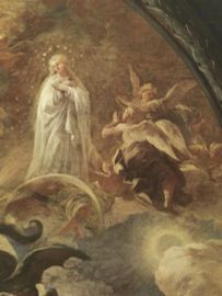 Numerosi, in ogni caso, i confronti tematici e compositivi con altre opere dell’artista napoletano, per lo più riferibili al suo ultimo tempo tra la Spagna e Napoli. Citiamo, tra le altre, il Trionfo di San Michele arcangelo, noto attraverso una copia di Francisco Bayeu nel Palazzo Reale di Madrid, e un San Michele in lotta con Lucifero davanti alla Madonna col Bambino e alla Trinità, anch’esso a Palazzo Reale; il tema della visione giovannea ritorna invece in un dipinto a El Pardo, Casita del Principe (San Giovanni ha la visione dell’Immacolata Concezione, fig. 1) del 1687.