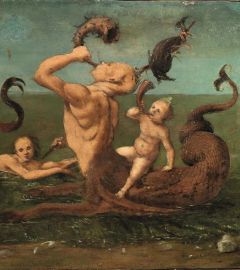 Le tavole dovevano formare un fregio ornamentale continuo, secondo un modulo figurativo derivante dalla scultura dei sarcofagi di età romana di cui troviamo proprio un esemplare con una nereide seduta su un ittiocentauro anche alla Galleria degli Uffizi (si veda Piero di Cosimo 1462-1522 cit., pp. 286-287, n. 37). Questo riferimento indica l’interesse sempre vivo degli artisti della seconda metà del Quattrocento per i modelli derivati dalla classicità.